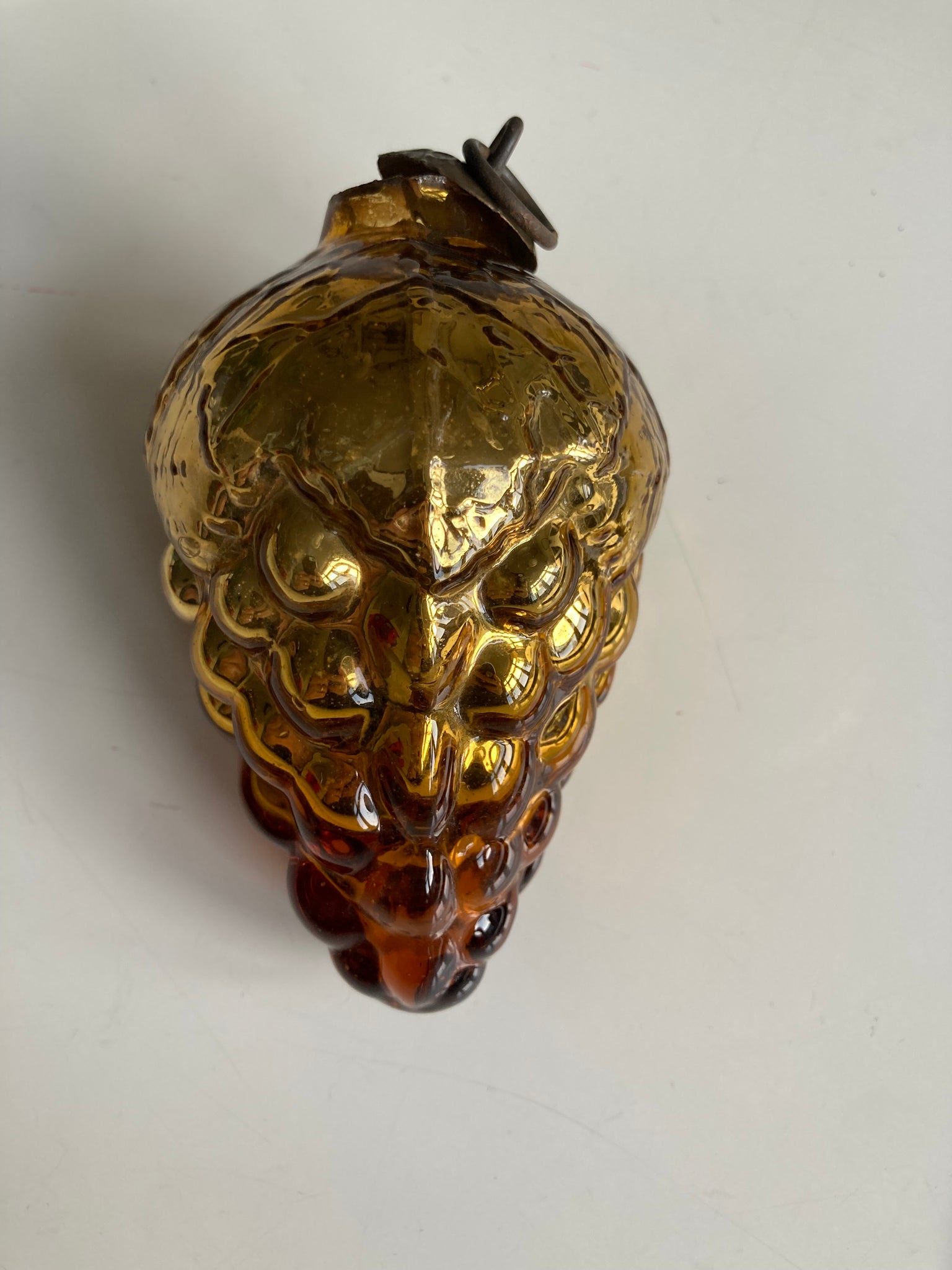 Antieke kugel kerst versiering van amber/goud kleurig glas, in de vorm van een druiventros.