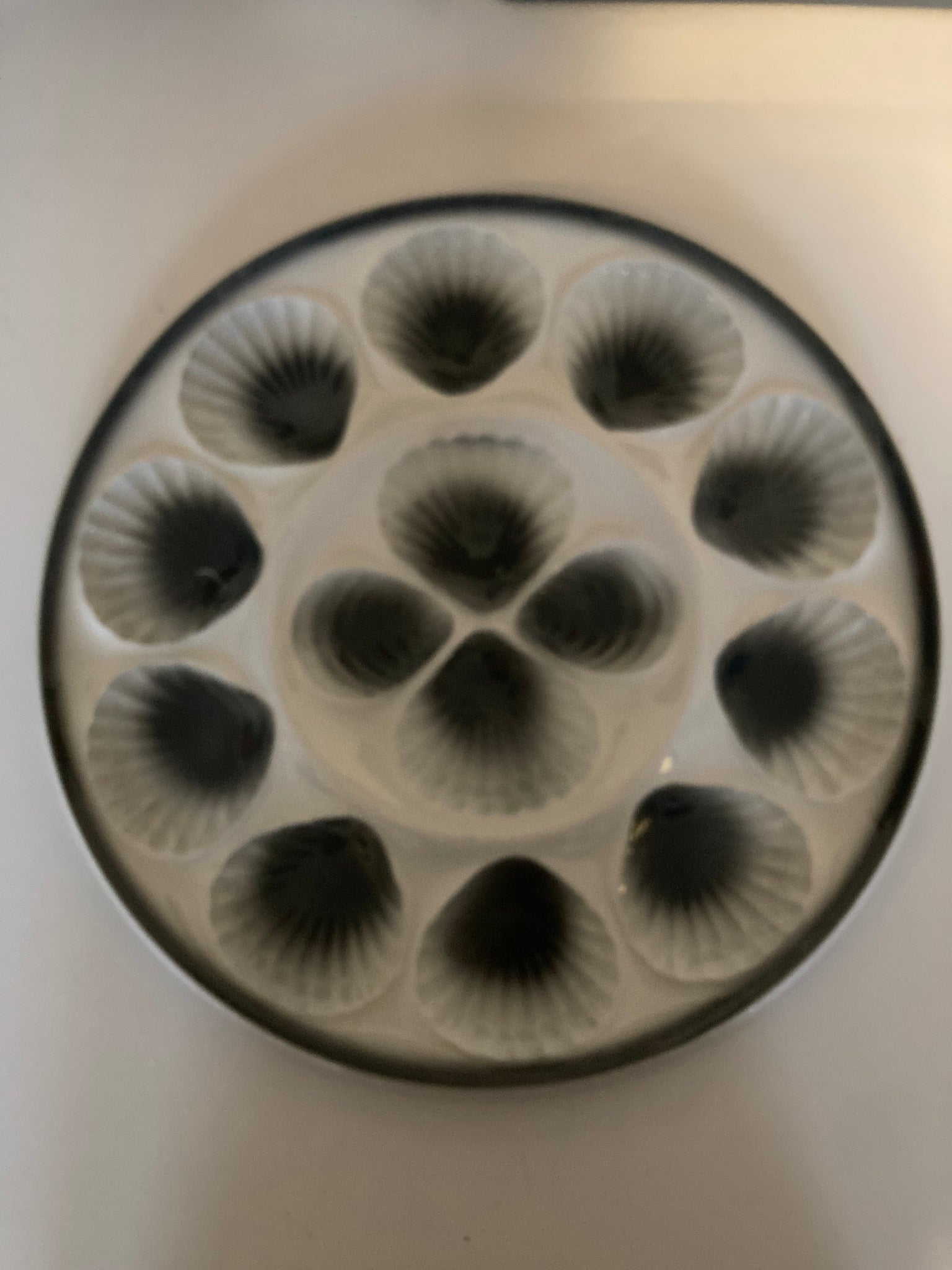 Groot oesterbord van Moulin des Loupes in grijs met wit .Oester/coquille bord voor 12 oesters/coquilles.
