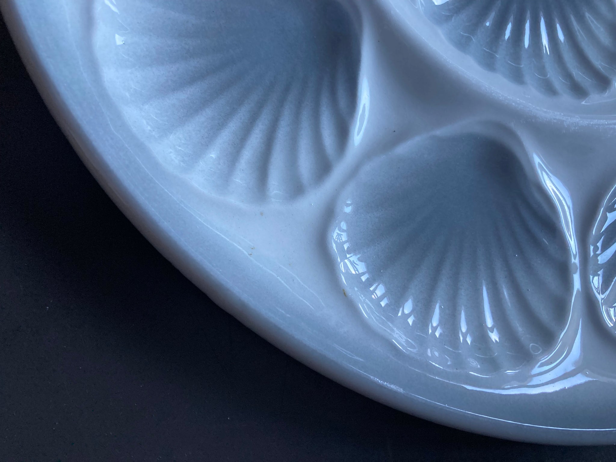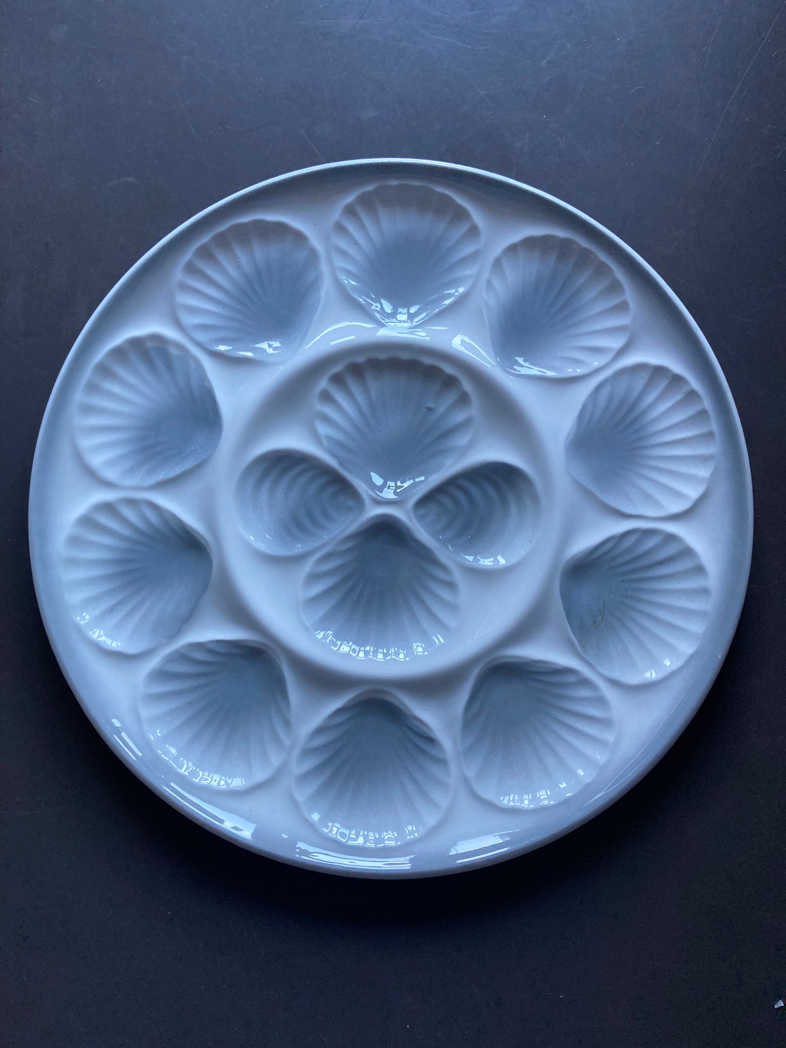 Mooi groot oesterbord van Moulin Des Loupes in grijs wit. Geschikt voor 12 oesters of coquilles.